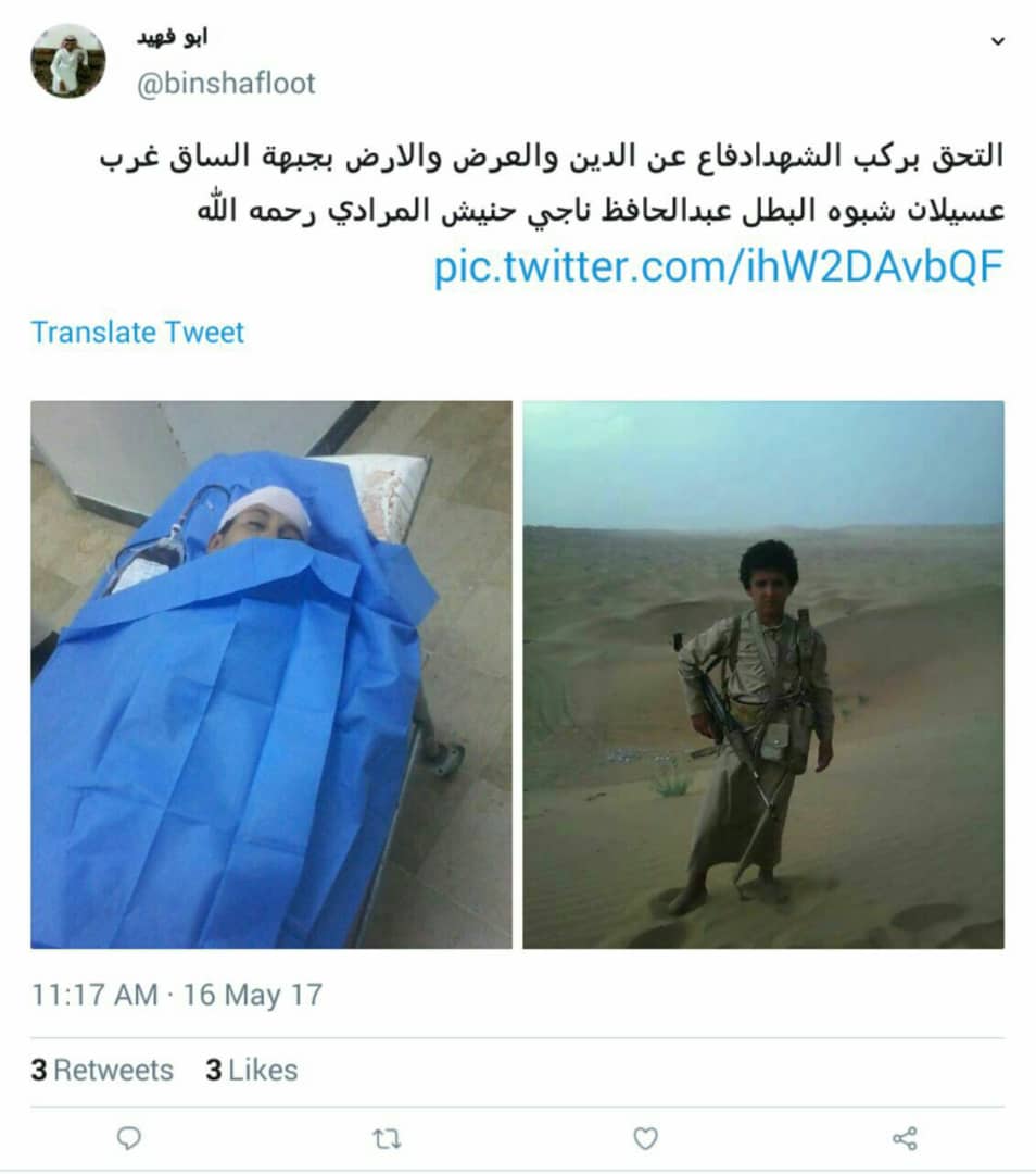 تداول اعلاميين تابعين للمرتزقه صورة طفل صغير. وهو مجند في جبهة الساحل مع اللواء ٢٦مشاه التابع للمرتزقه