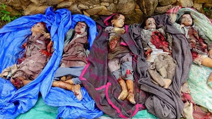بدوره المتحدث باسم حركة أنصار الله محمد عبد السلام نشر على موقع فيسبوك صورا ومقاطع فيديو تظهر أطفالا قتلى ملفوفين بأغطية مشيرا إلى استهداف طيران التحالف السعودي لهم.