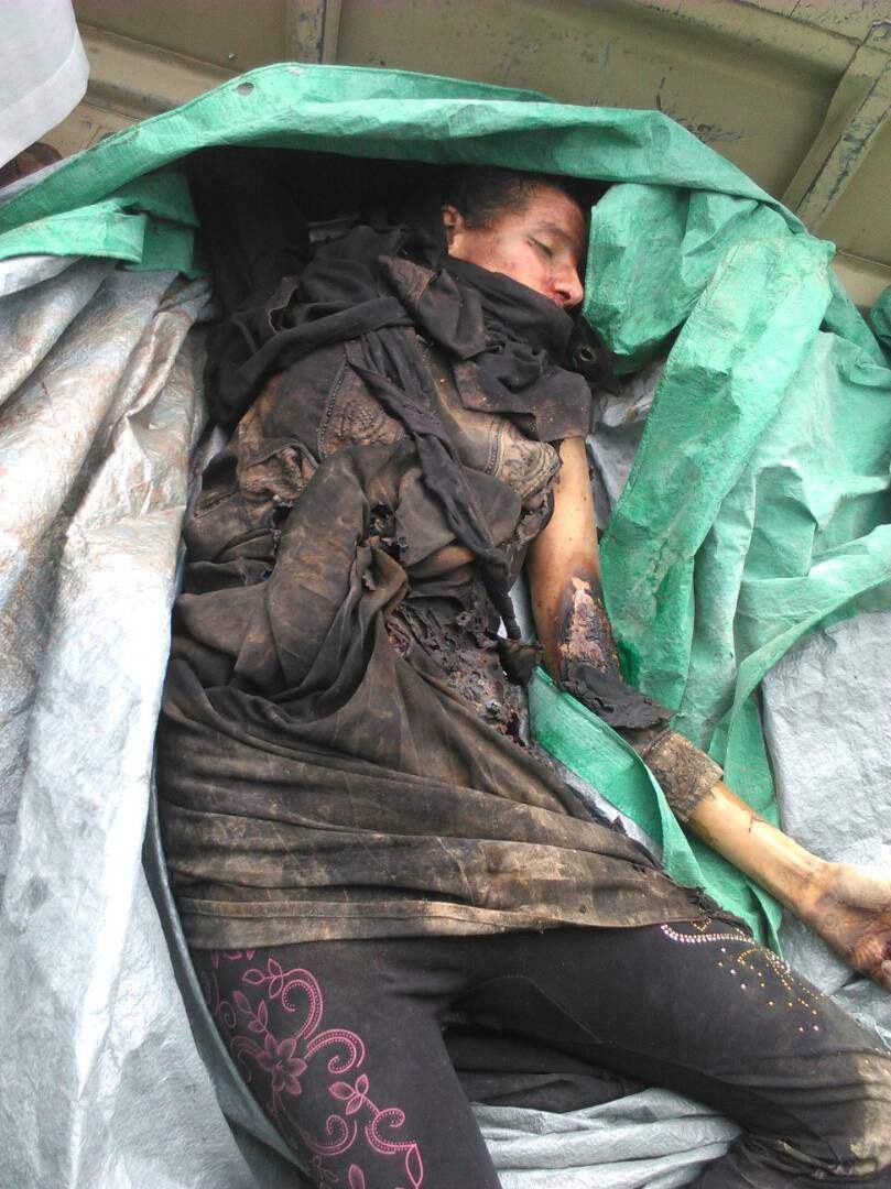 إمرأة محروقة ومضروبة ضربا مبرحا في أحدى الأبار