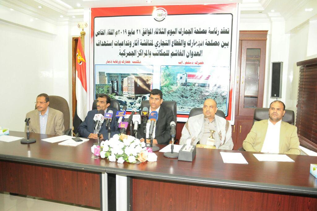 جاء ذلك في اللقاء التشاوري الذي عقد اليوم بصنعاء بين مصلحة الجمارك والقطاع التجاري لمناقشة آثار وتداعيات إستهداف العدوان الغاشم للمكاتب والمراكز الجمركية.