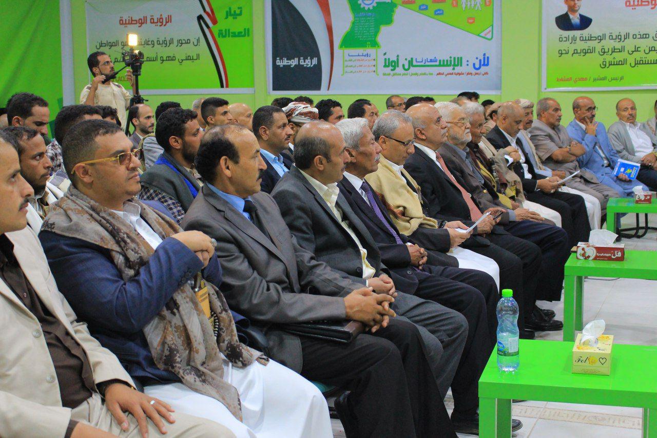 مشيراً ان الرؤية الوطنية أتت لتبدل الشك باليقين لتأسيس نظام جديد ديمقراطي حزبي الكل مشاركون في إدارة الحكم والكل مشاركون في الجبهات وهذه اول لبنه نشاهدها بين حزبين رئيسيين وسنمضي في تنشيط كافة الأحزاب الوطنية.