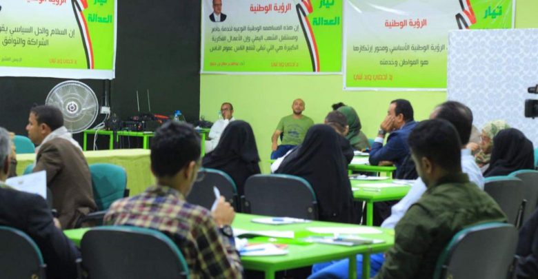 تحت شعار الأنسان اولاً , اقام تحالف” تيار العدالة” – المكون من تنظيم مستقبل العدالة وحزب الشعب الديمقراطي ” حشد” – صباح اليوم الخميس الموافق 25 -7 -2019م. ورشة عمل خصصت للتعريف بالرؤية الوطنية لبناء الدولة اليمنية الحديثة وبمشاركة 21 عضوا وعضوة من كادر التيار.