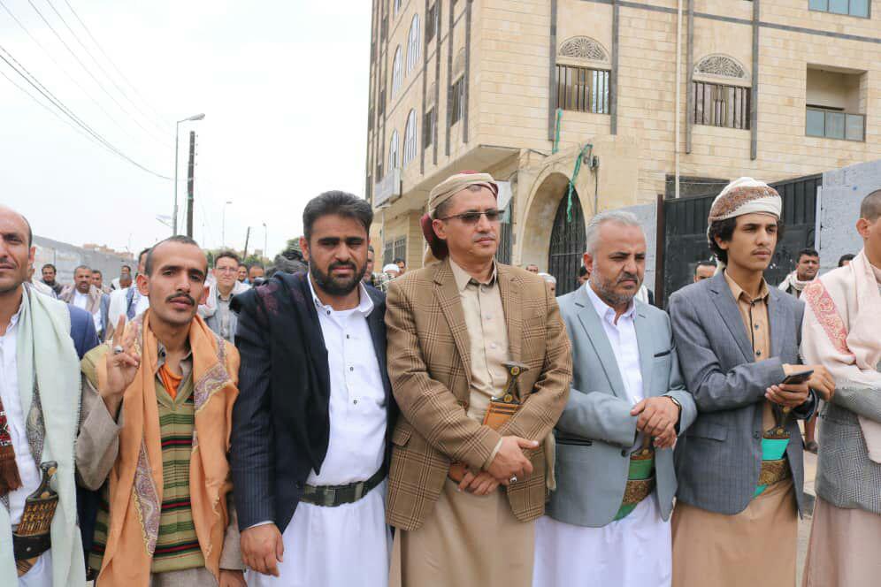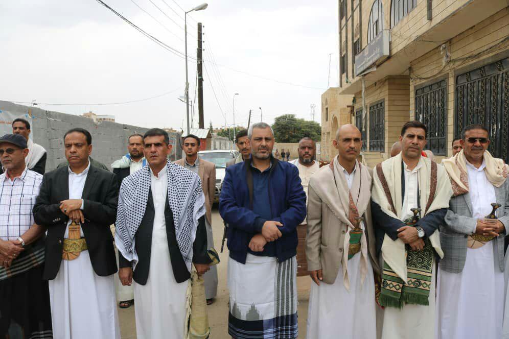 حضر الوقفة الاحتجاجية المدير التنفيذي لشركة النفط اليمنية الأستاذ/ ياسر عبدالإله الواحدي ومعه عدد من قيادات شركة النفط ومدراء ونواب وموظفي الفروع والدوائر بالشركة اليوم صلاة الجمعة والذي اسموها ”جمعة رفع الحصار عن السفن النفطية ومطار صنعاء الدولي ” امام مقر الامم المتحدة في شارع الستين .