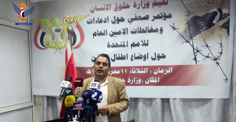 نظمت وزارة حقوق الإنسان اليوم مؤتمرا صحفيا حول إدعاءات ومغالطات الأمين العام للأمم المتحدة حول أوضاع أطفال اليمن.