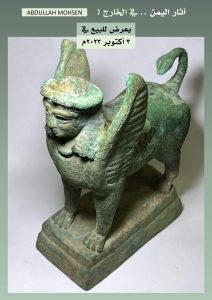 من صفحة وزير الثقافة السابق / خالد الرويشان بلادٌ في مزاد تل أبيب! مزاد في تل أبيب لبيع هذه الآثار اليمنية التي لا تُقدّر بثمن بعد عشرين يوماً! يوم 3 أكتوبر القادم ستُعرض هذه القطع في المزاد مع 11 قطعة أخرى! لن أقول أين الدولة اليمنية فهي لم تحافظ على موجوداتها وهي عندها حتى يمكن أن تستعيدها من تل أبيب؟ إنما سأرجو تجار اليمن الوطنيين الكبار أن يدخلوا في المزاد ويستعيدوا هذه القِطع وتبقى لديهم حتى يتم تعويضهم من الدولة! وفي الواقع أنهم لن يخسروا شيئا .. فهي كنزٌ أثري ووطنيٌ مهمٌ جداً.