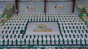يحتوي المشروع على 30 ألف سلة غذائية تشمل السلة أصناف “زبيب، حب السمسم” بواقع كيلوجرام زبيب ونصف كيلوجرام من “العسل، البن، القشر، حب العزيز، إلى جانب 500 ملم زيت السمسم”.