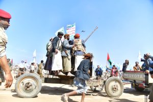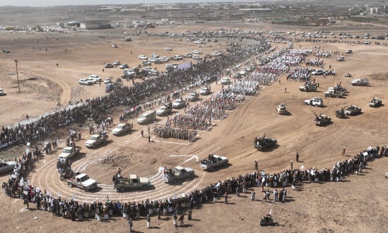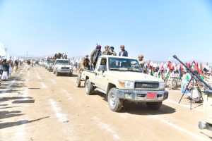 وقال “أبناء أرحب اليوم في كل الجبهات يسطرون الملاحم البطولية، وما حضورهم اليوم أو استعراضهم إلا رمزياً، وأيضاً لإيصال رسالة الوفاء للسيد عبدالملك بدر الدين الحوثي الذي تحدث عن عهد الأحرار باقي، وأبناء أرحب يعاهدون قائدهم وسيكونون شوكة في نحور الأعداء”.