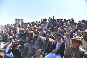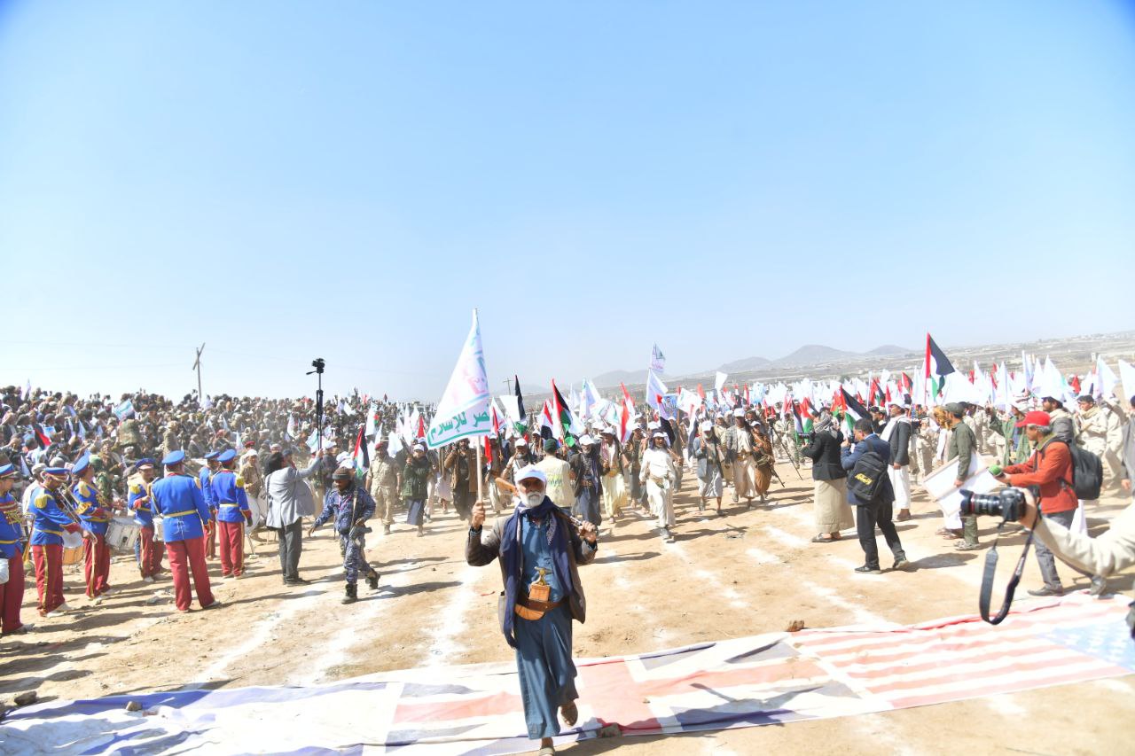 وقال “أبناء أرحب كانوا في مواجهة الأتراك والقوى الغازية، واليوم يعدّون أنفسهم لمواجهة الأمريكي الذي نقول له إن كنت تريد نزالاً فنحن حاضرون للنزال ومواجهة مباشرة فقد رحب بها السيد القائد فما بالك بهؤلاء الأبطال”.