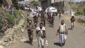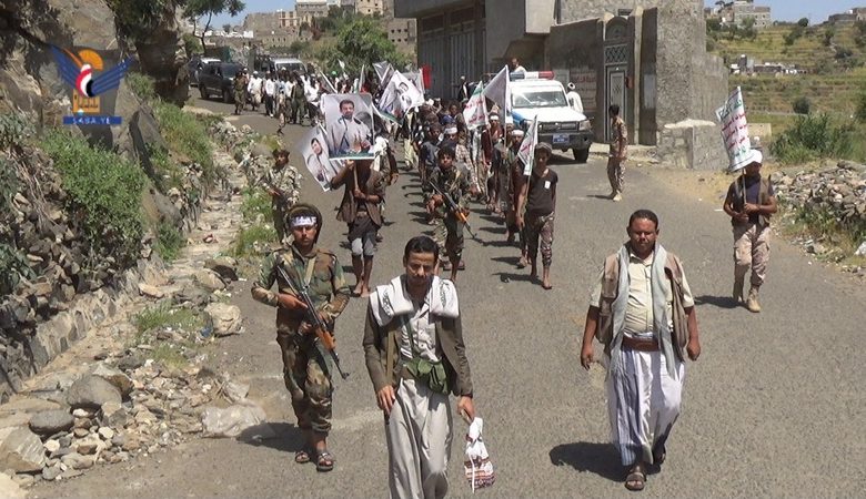 وشارك في المسير مسؤول التعبئة العامة بمديرية حيفان، أرحب العريقي، ومدير إدارة التربية والتعليم بالمديرية، عبدالرقيب مرهوب، ومدير أمن المديرية، العقيد خالد المغربي، وشيخ مشايخ حيفان، عبدالغفور عبدالحق، وعدد من القيادات الرسمية والمجتمعية .